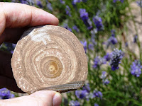 Aspecto de las "coronetas" de los alrededores de la ermita de la Carrodilla. A la derecha, las dos caras internas de las mitades, de una que ha sido abierta. A la izquierda, una entera, con la superficie exterior irregular y aspera. Fotografía original de Blanca Latorre