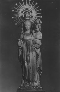 Desgraciadamente, la antigua imagen fue destruida durante la pasada guerra (in)civil(izada), por lo que la afirmación anterior no puede demostrarse directamente. Se conservan media docena de fotografías de la antigua imagen, en la fototeca del Archivo Comarcal de las que mi corresponsal y colaboradora Lola Lucas (e.p.d) pudo obtener copias digitales, pero los originales son de tan baja calidad, normal en las cámaras fotográficas de aficionado de aquella época, que resulta