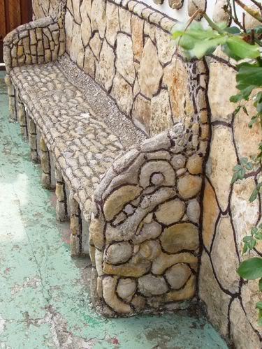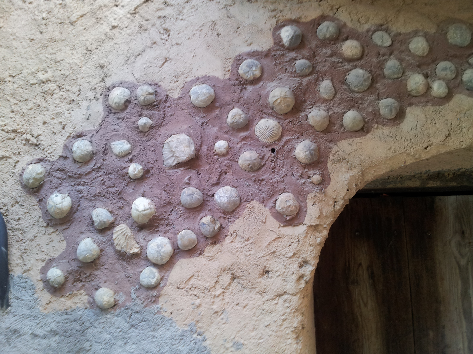 El interior de la casa, cocina, comedor y un pequeño CW (wc?), presentan sus paredes recubiertas con fósiles, lo sé por que lo ví todo, en directo, hace ya muchos años. Como 25 a 30, más o menos.
