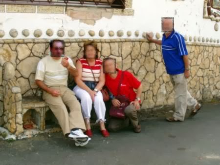 Fotografía del grupo de excursionistas, con el rostro "pixelado", desplazados hasta bóveda para realizar la visita al edificio singular de la localidad. Ocasión aprovechada por Ernesto para realizar el reportaje que se presenta en esta entrada